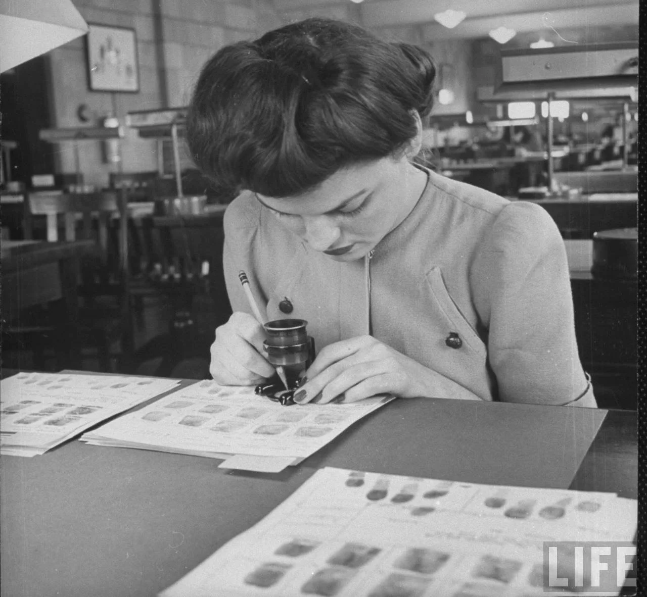 To say that the work was tedious and monotonous would be an understatement. However, I knew I had someone's life in my hands with each card I examined. Each indelible mark was measured and recorded, including cuts, burns, and scrapes. The work was complex and time-consuming; essentially, I would spend my entire day assigning numerical values according to the ridge patterns of loops, whorls, and arches I saw in the magnified fingerprints.