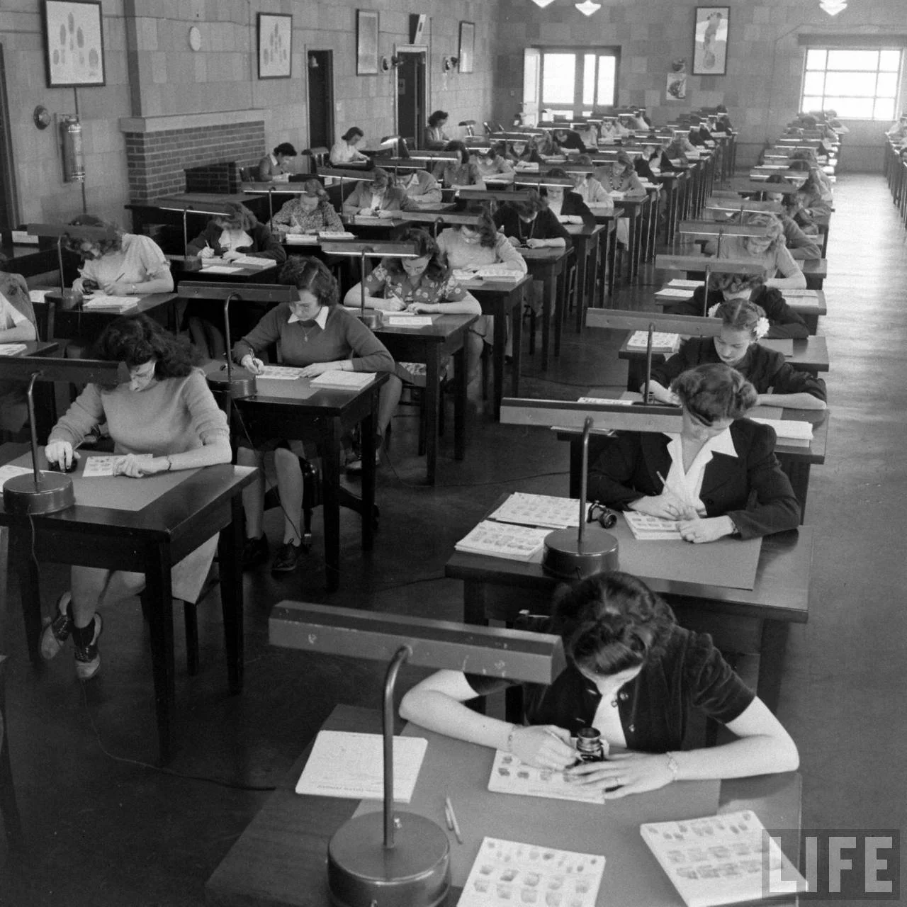The elevator finally stopped, and we walked into a room that was about the size of half a football field. The constant buzzing and clicking of a conveyor belt with 12" x12" bundles of fingerprints moving around like an airport baggage carousel snaked the room from end to end. Throughout the carousel, other analysts were positioned on stools or at slanted desks, hunched over fingerprints with a magnifying glass, a fluorescent light, and .05" mechanical pencils. Several folks looked up at us, rolled their eyes, and bent back over their work.